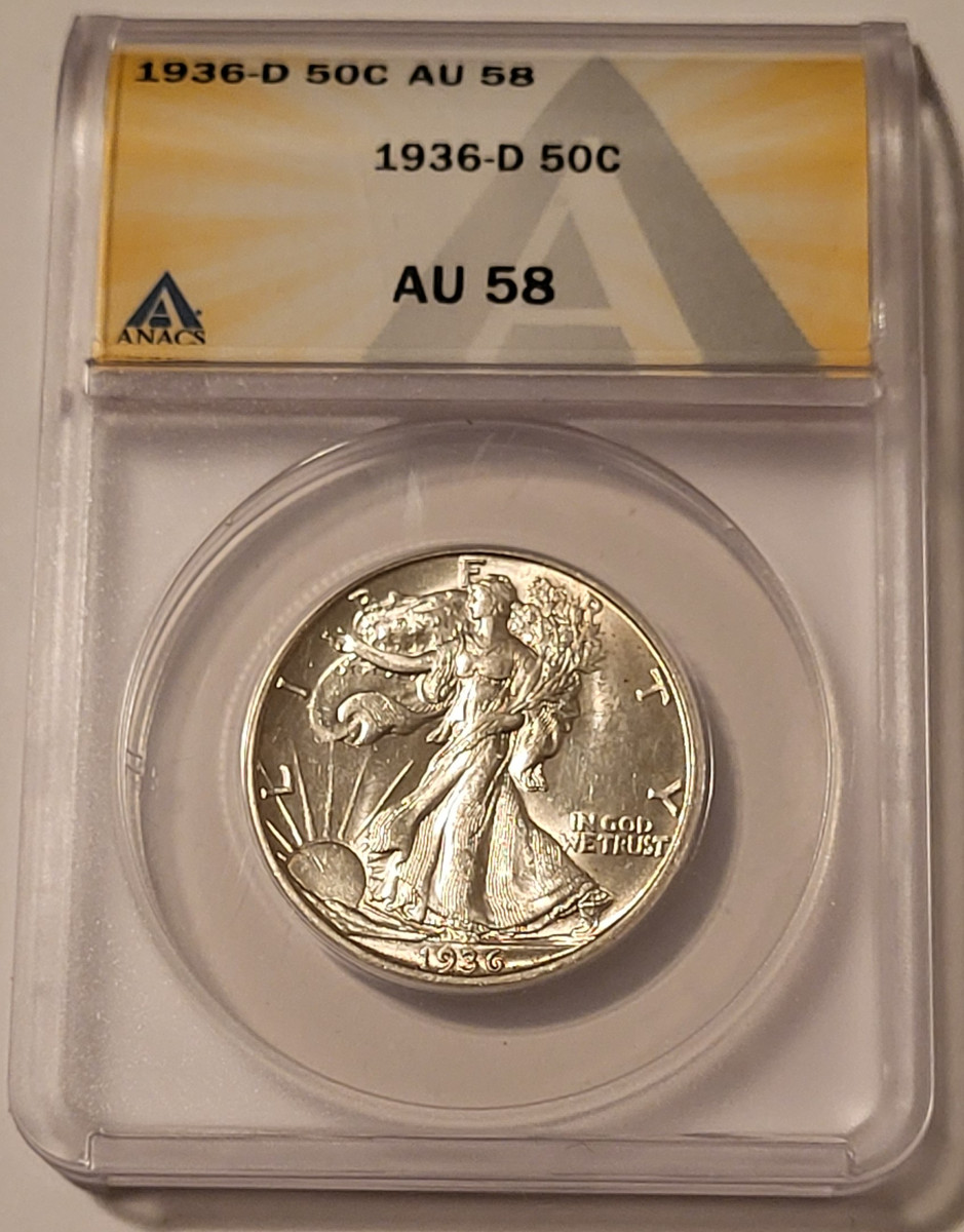 7862126 | 1936 D Walking Liberty Half Dollar. Silver. About Uncirculated 58 ANACS.