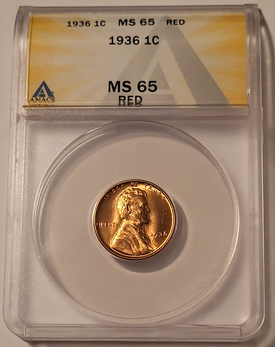 7841391 | 1936 Lincoln Wheat Cent. Philadelphia Mint. Bronze. Mint State 65 Red ANACS.