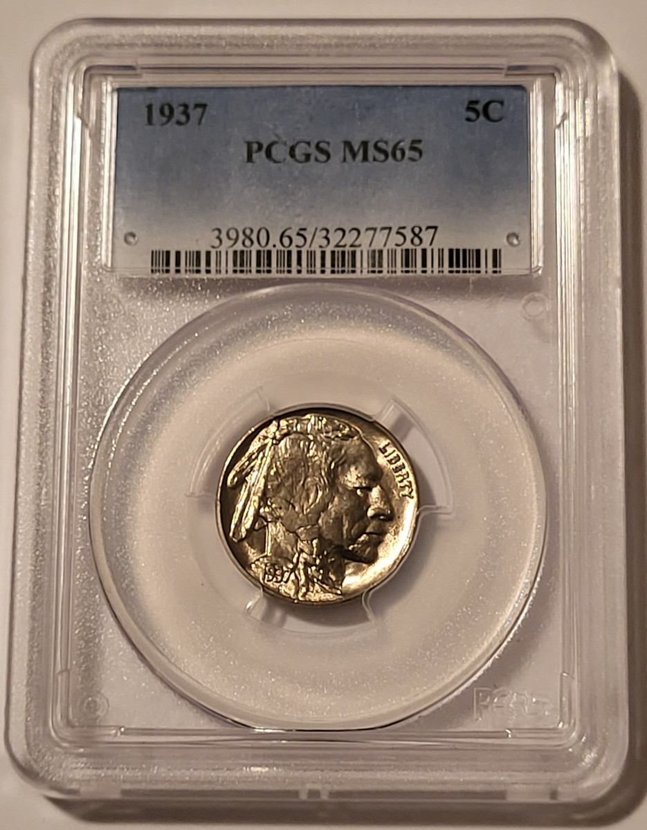 32277587 | 1937 Buffalo Nickel. Philadelphia Mint. Copper-Nickel. Mint State 65 PCGS.