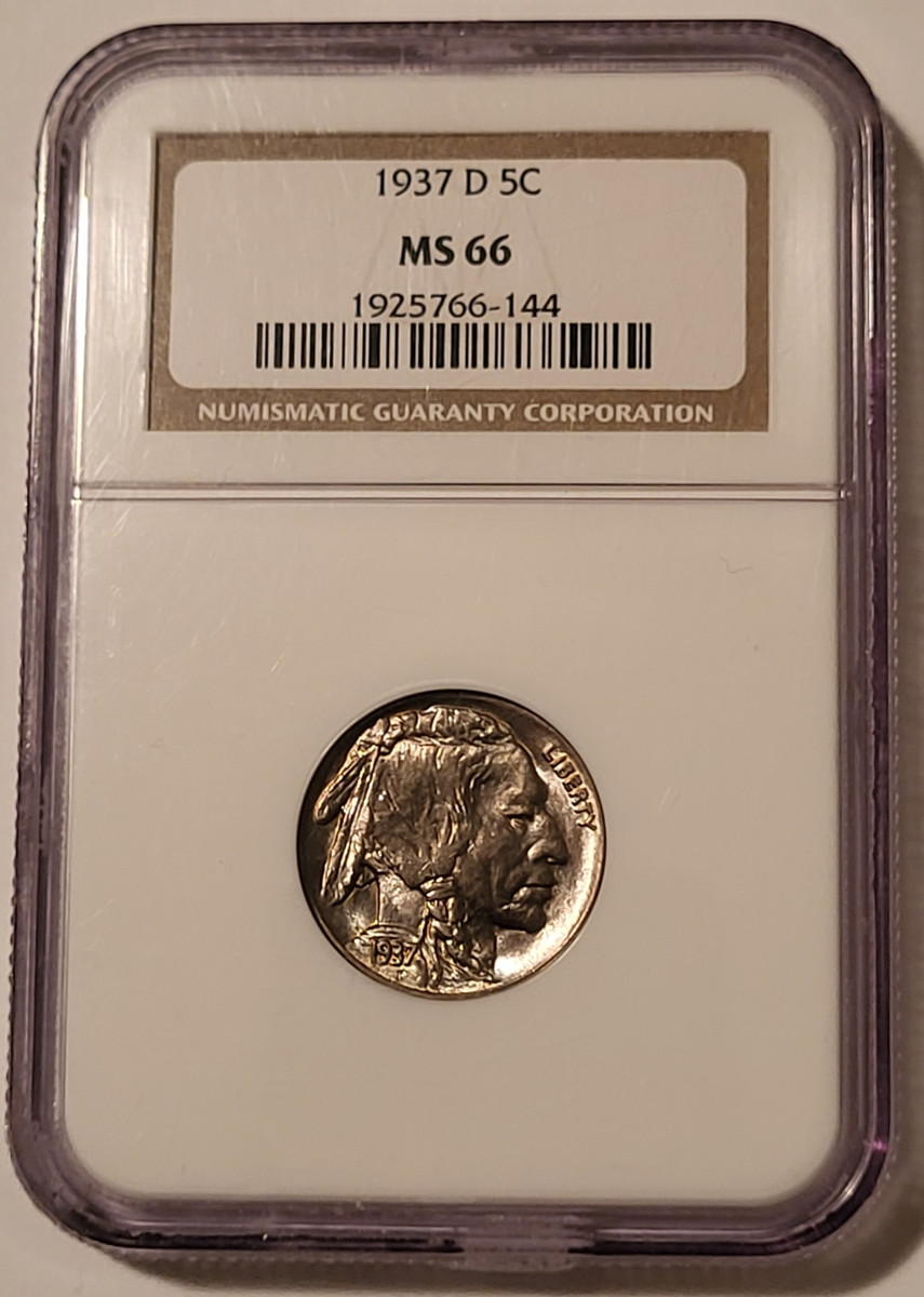 1925766144 | 1937 D Buffalo Nickel. Copper-Nickel. Mint State 66 NGC. Light Patina.