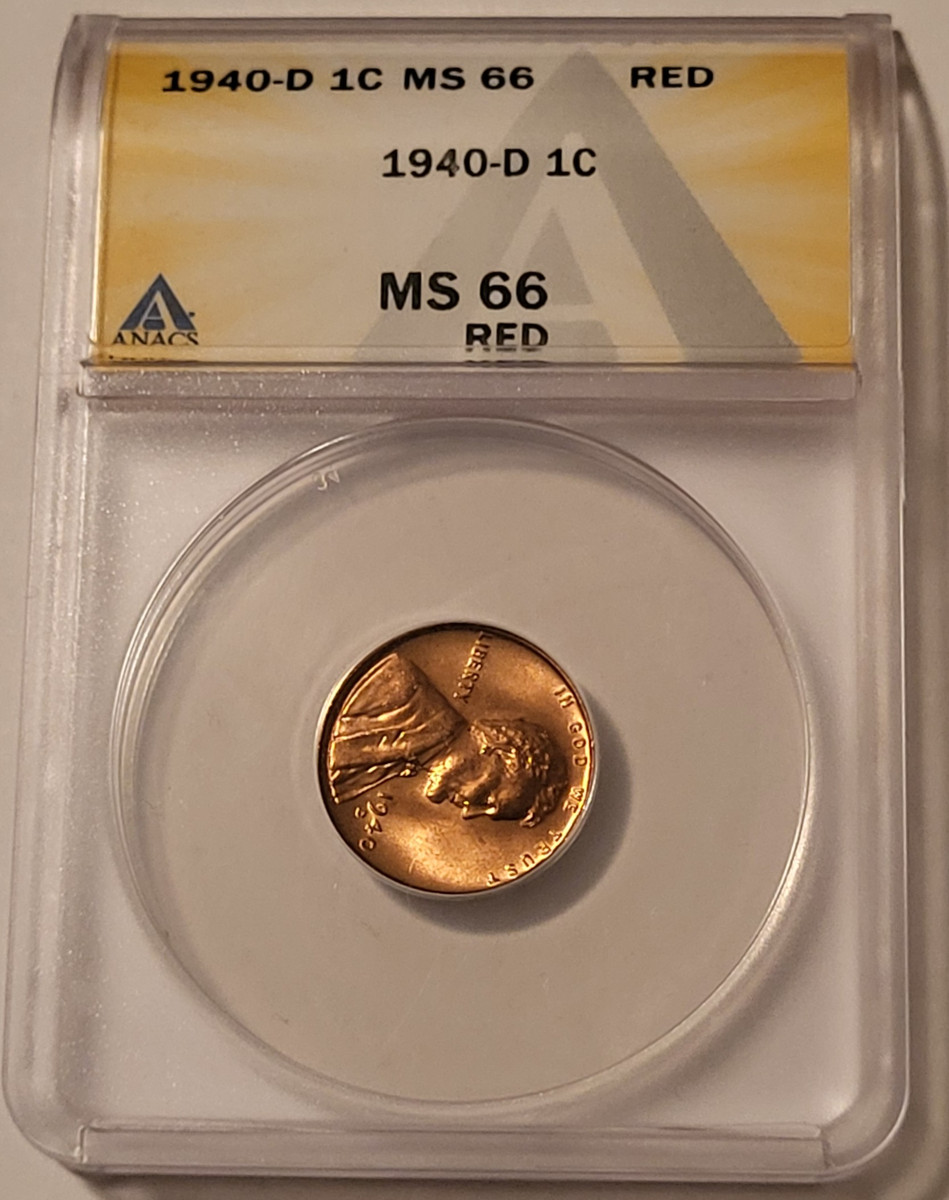 7841411 | 1940 D Lincoln Wheat Cent. Bronze. Mint State 66 Red ANACS.