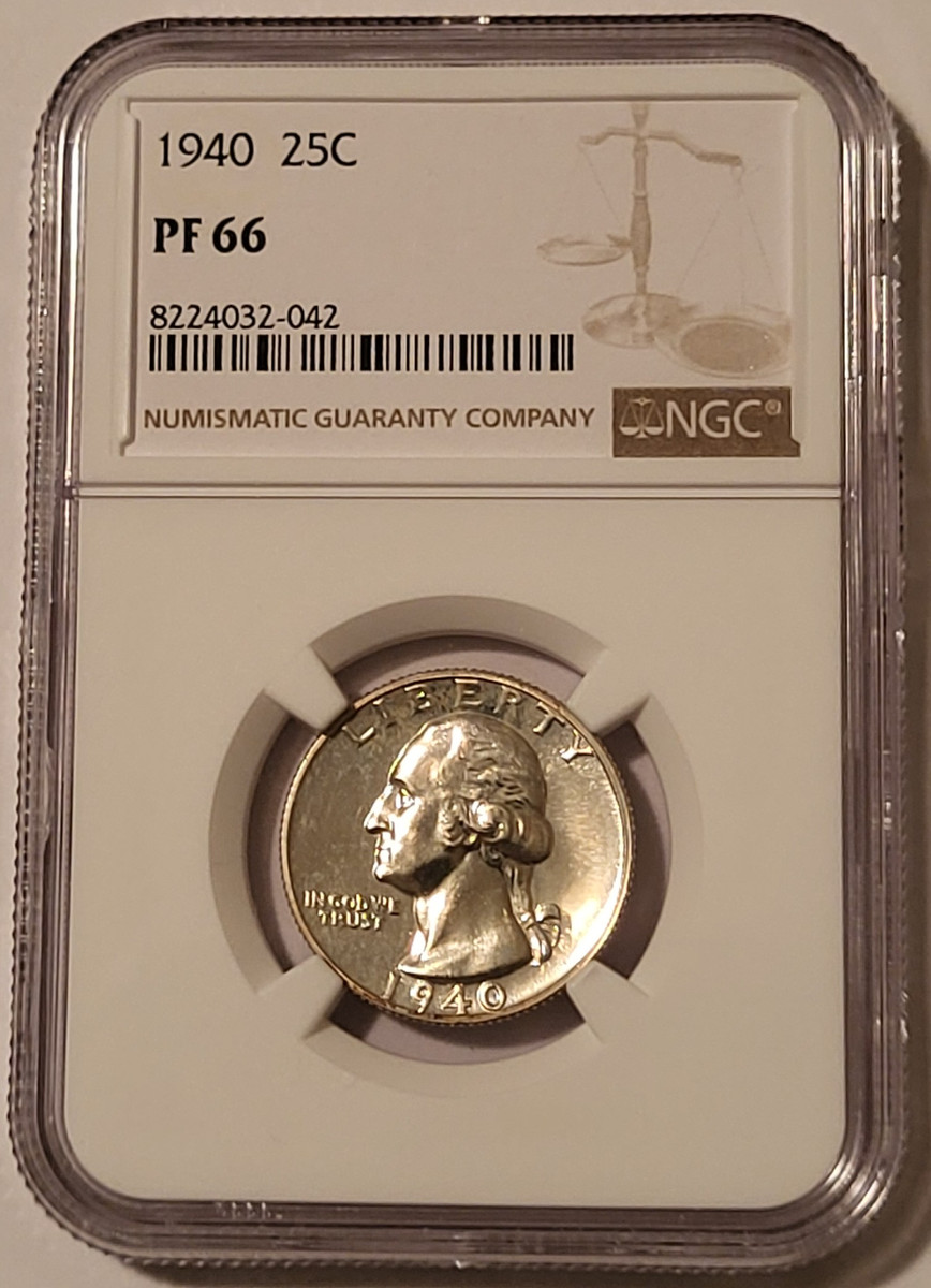 8224032042 | 1940 Washington Quarter. Philadelphia Mint. Silver. Proof-66 NGC. Low proof mintage of 11,246.