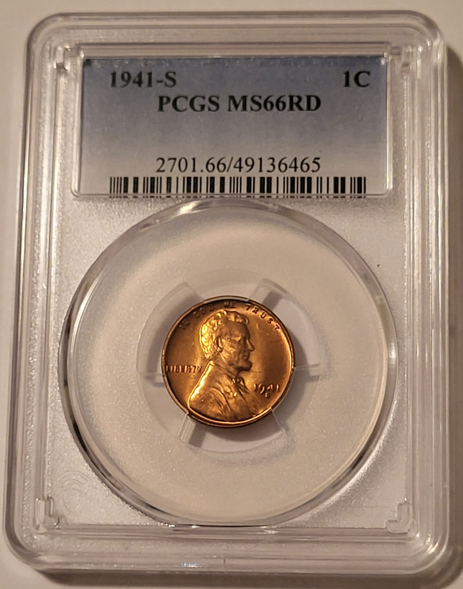 49136465 | 1941 S Lincoln Wheat Cent. Bronze. Mint State 66 Red PCGS.