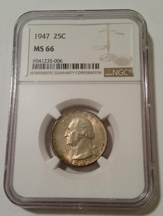 6041235006 | 1947 Washington Quarter. Philadelphia Mint. Silver. Mint State 66 NGC. Toning.
