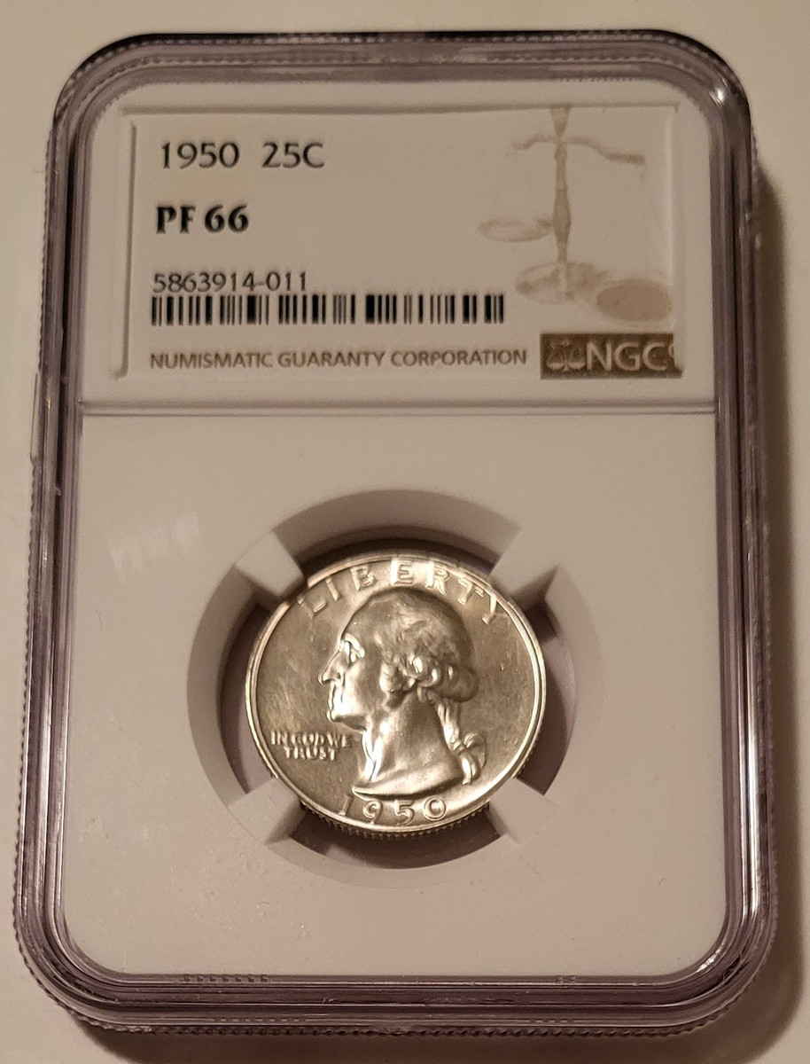 5863914011 | 1950 Washington Quarter. Philadelphia Mint. Silver. Proof-66 NGC. Light Patina. Low proof mintage of 51,386.