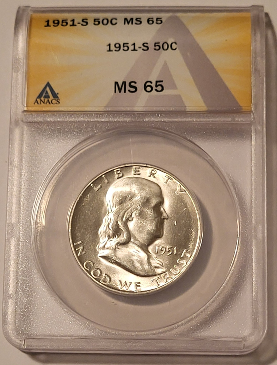 6199399 | 1951 S Franklin Half Dollar. Silver. Mint State 65 ANACS.