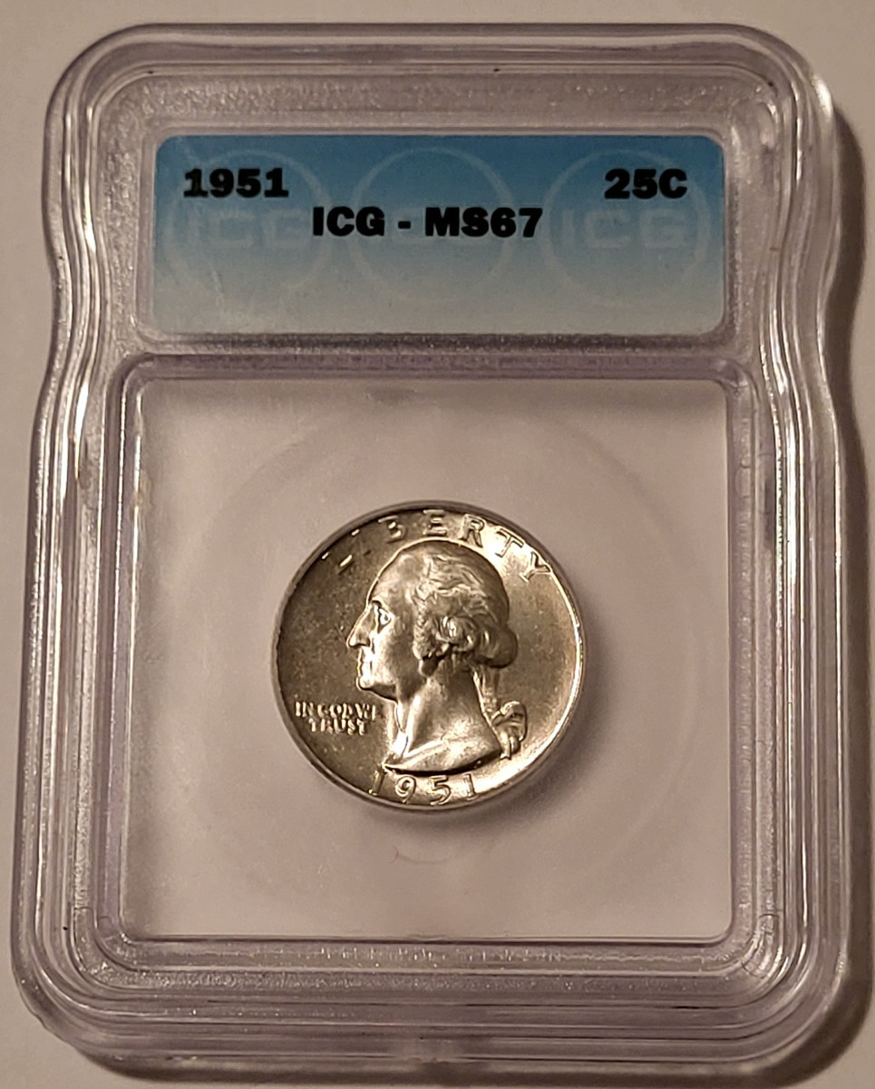 13860201010 | 1951 Washington Quarter. Philadelphia Mint. Silver. Mint State 67 ICG.