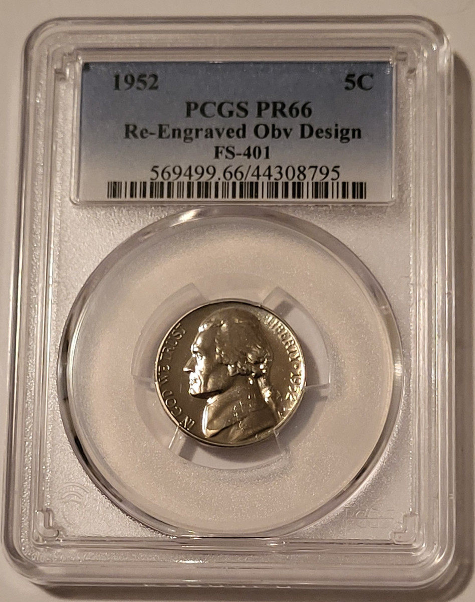 44308795 | 1952 Jefferson Nickel. Philadelphia Mint. Copper-Nickel. Re-Engraved Obverse Design Variety, FS-401. Proof-66 PCGS.