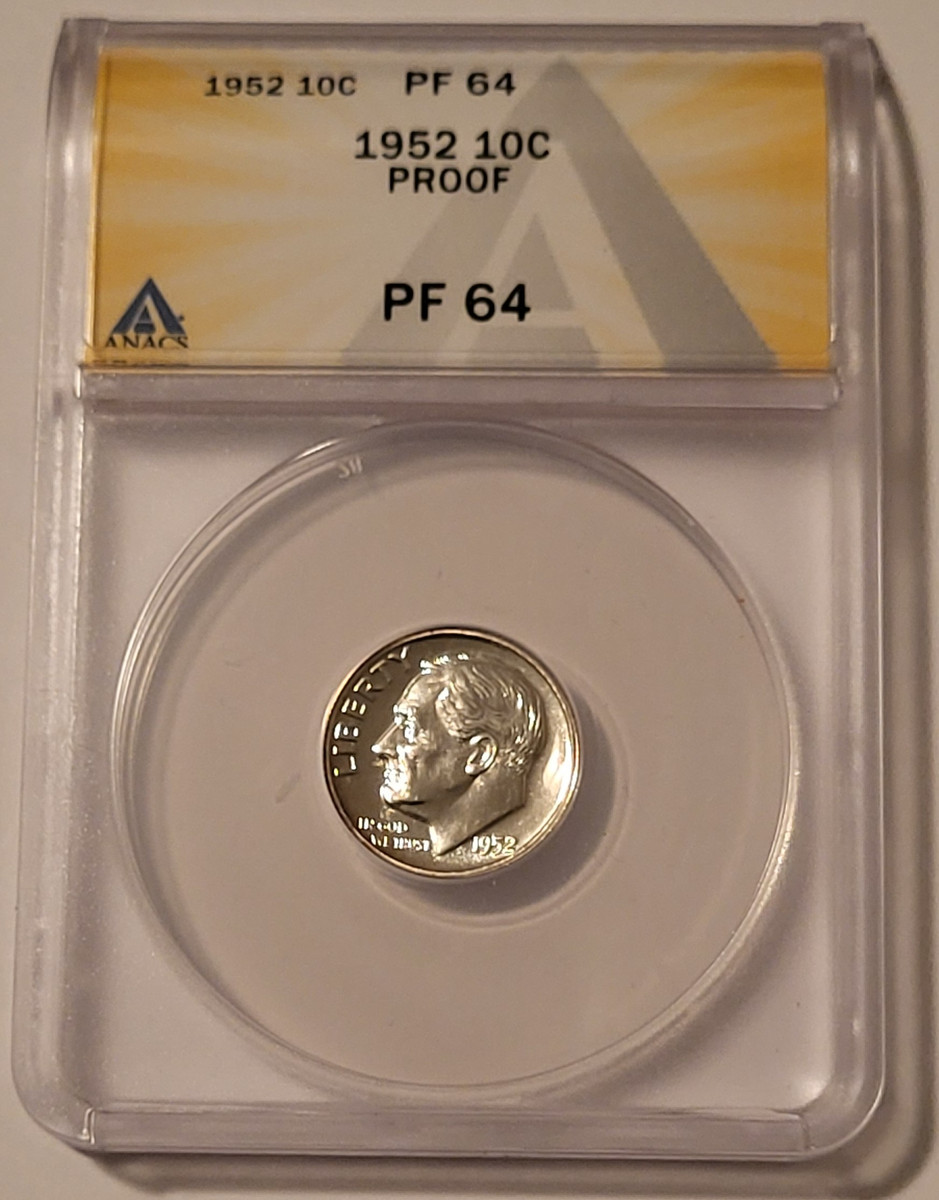 7883211 | 1952 Roosevelt Dime. Philadelphia Mint. Silver. Proof-64 ANACS.