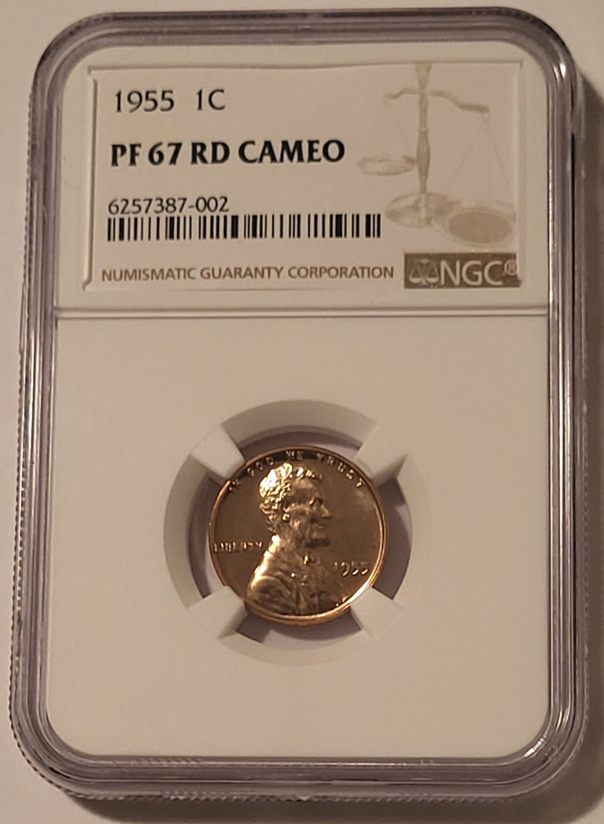 6257387002 | 1955 Lincoln Wheat Cent. Philadelphia Mint. Bronze. Proof-67 Red Cameo NGC.
