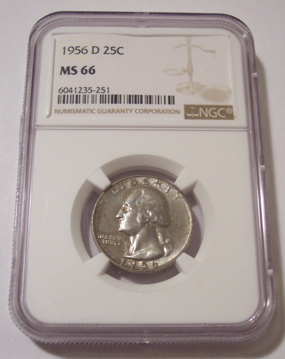 6041235251 | 1956 D Washington Quarter. Silver. Mint State 66 NGC. Toned.