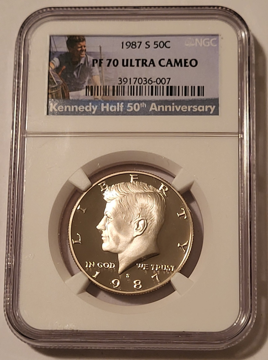 3917036007 | 1987 S Kennedy Half Dollar. Copper-Nickel. Proof-70 Ultra Cameo NGC. Boating Label.