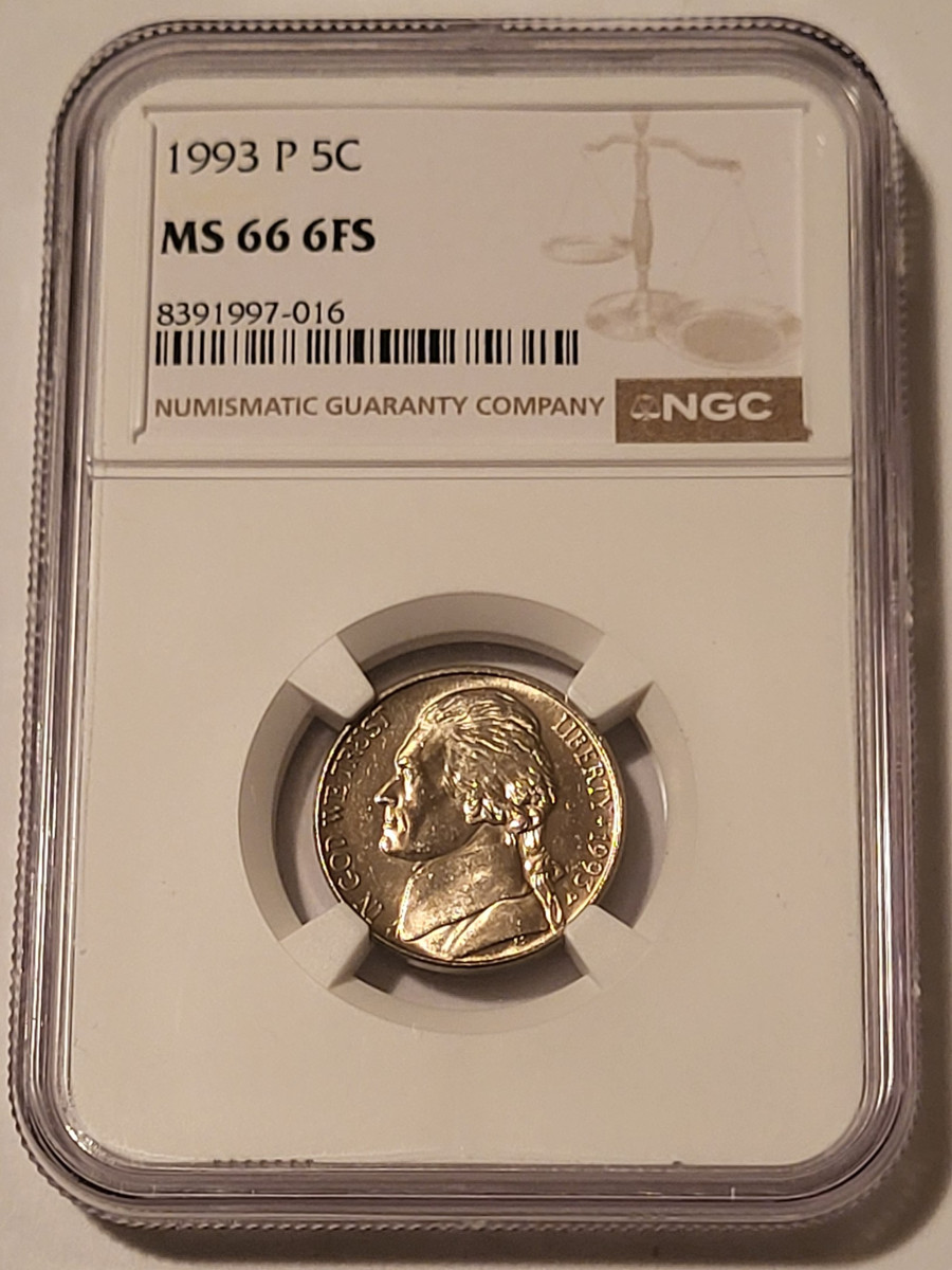 8391997016 | 1993 P Jefferson Nickel. Copper-Nickel. Mint State 66 6 Full Steps NGC.