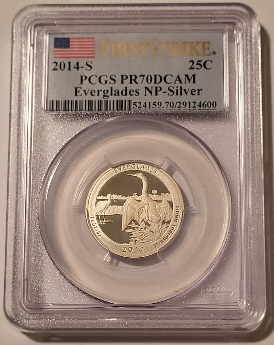 29124600 | 2014 S Silver Everglades National Park Quarter. Proof-70 Deep Cameo PCGS First Strike.