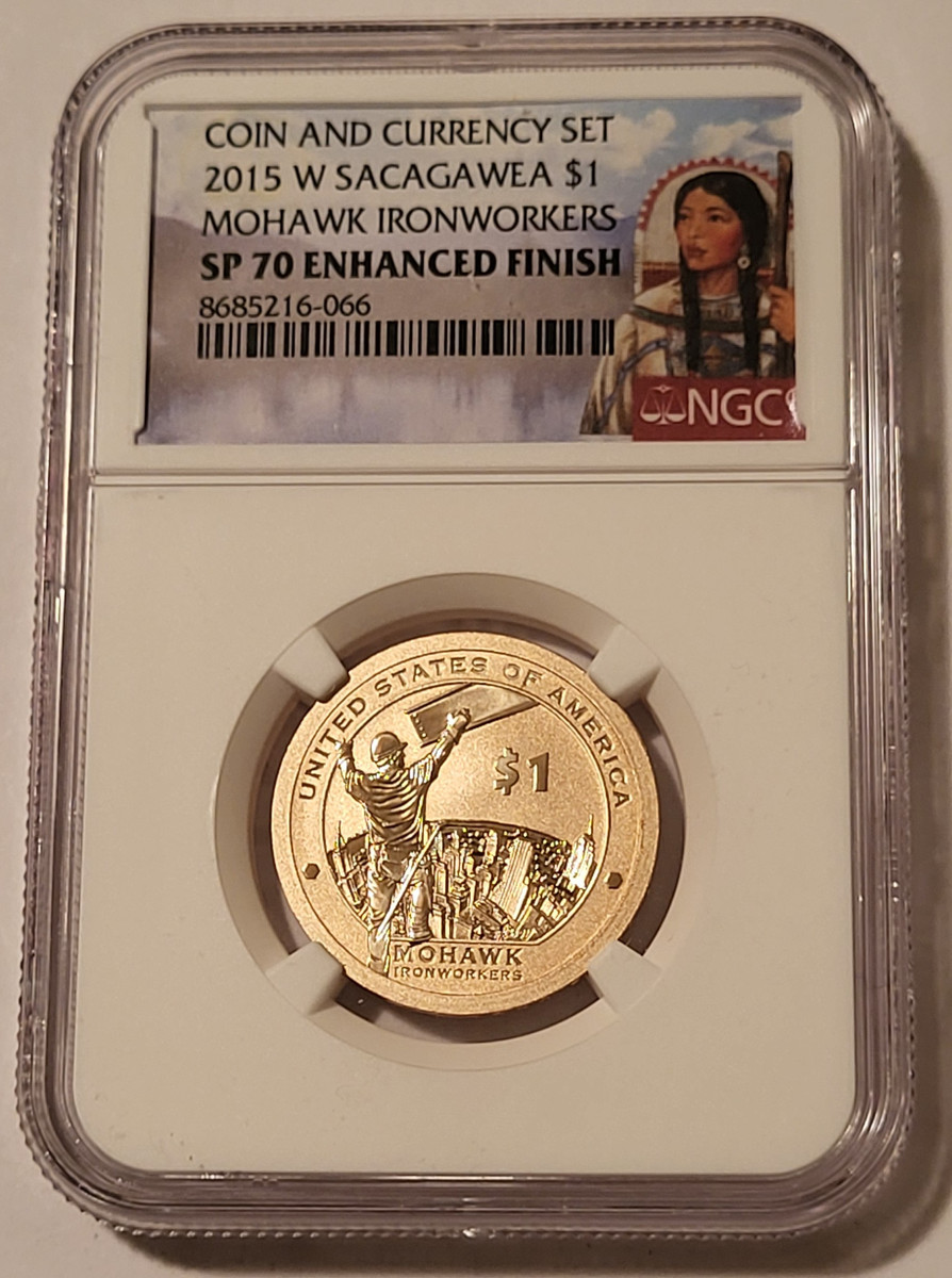 8685216066 | 2015 W Native American Dollar - Enhanced. Mohawk Ironworkers. Specimen-70 NGC Sacagawea Label.
