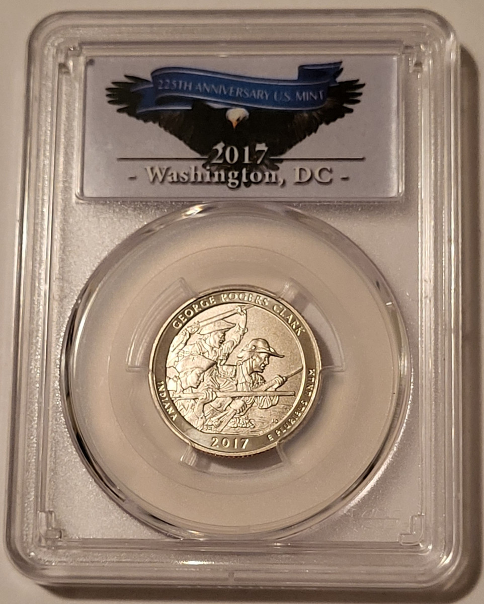 85106876 | 2017 S George Rogers Clark National Park Quarter - Enhanced. Specimen-70 PCGS. First Day of Issue. U.S. Mint 225th Anniversary Label/Washington D.C. Releases - 1 of 1,000.