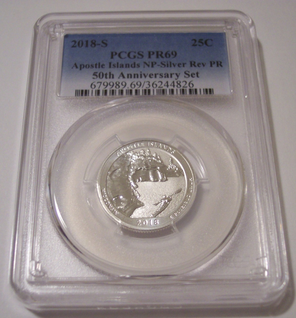 36244826 | 2018 S Silver Apostle Islands National Park ATB Quarter. Reverse Proof. PR69 PCGS Blue Label.