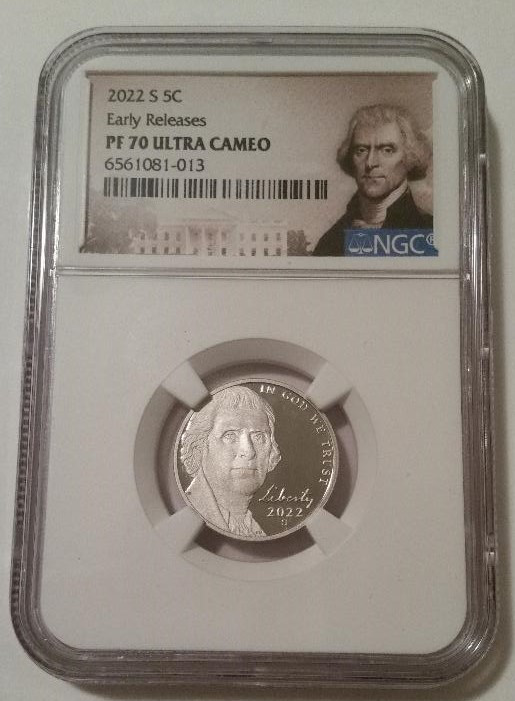 6561081013 | 2022 S Jefferson Nickel. Copper-Nickel. Proof-70 Ultra Cameo NGC Early Releases. Portrait Label.