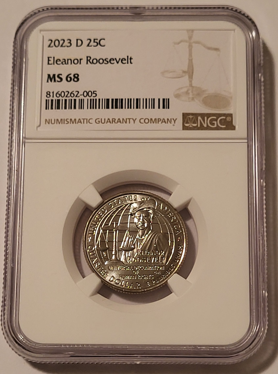 8160262005 | 2023 D Eleanor Roosevelt Quarter. Copper-Nickel/Clad. Mint State 68 NGC.