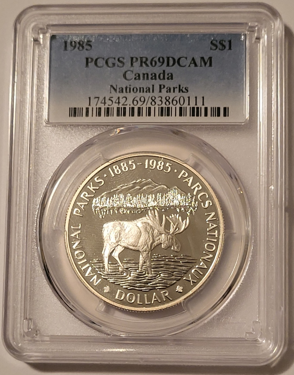 83860111 | Canada Elizabeth II 1985 Silver Dollar - National Parks Centennial (23.3726 grams, .500 fine). Proof-69 Deep Cameo PCGS.