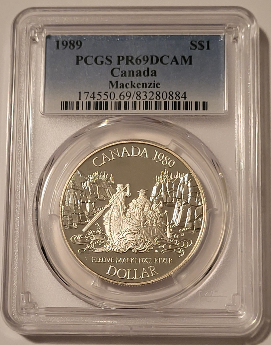 83280884 | Canada Elizabeth II 1989 Silver Dollar - Mackenzie River (23.3726 grams, .500 fine). Proof-69 Deep Cameo PCGS.