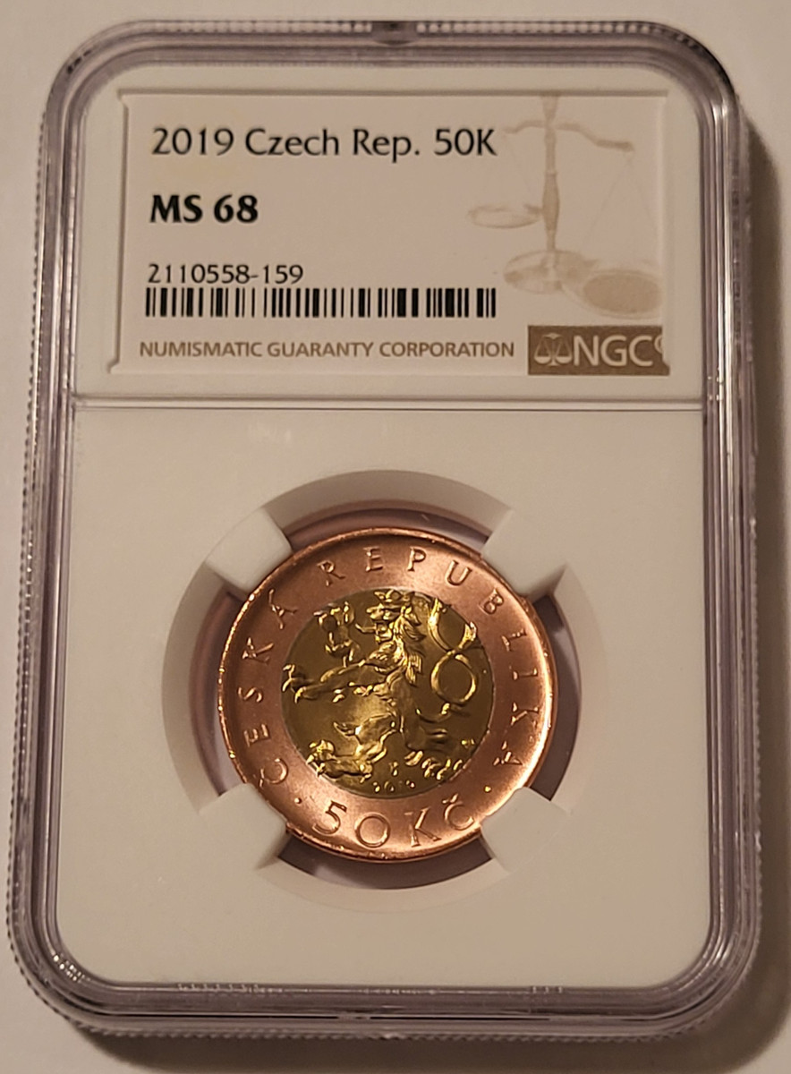 2110558159 | Czech Republic 2019 50 Korun. Bi-Metallic. Mint State 68 NGC.