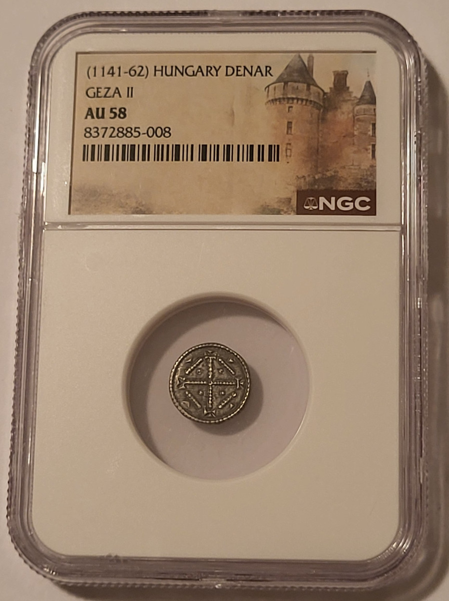 8372885008 | Middle Ages: Hungary Geza II (1141-62) Silver Denar. About Uncirculated 58 NGC. Scarce Type.