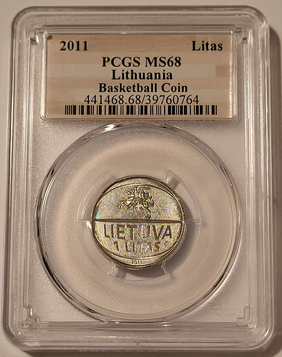39760764 | Lithuania 2011 1 Litas. Copper-Nickel. European Basketball Championship. Mint State 68 PCGS.