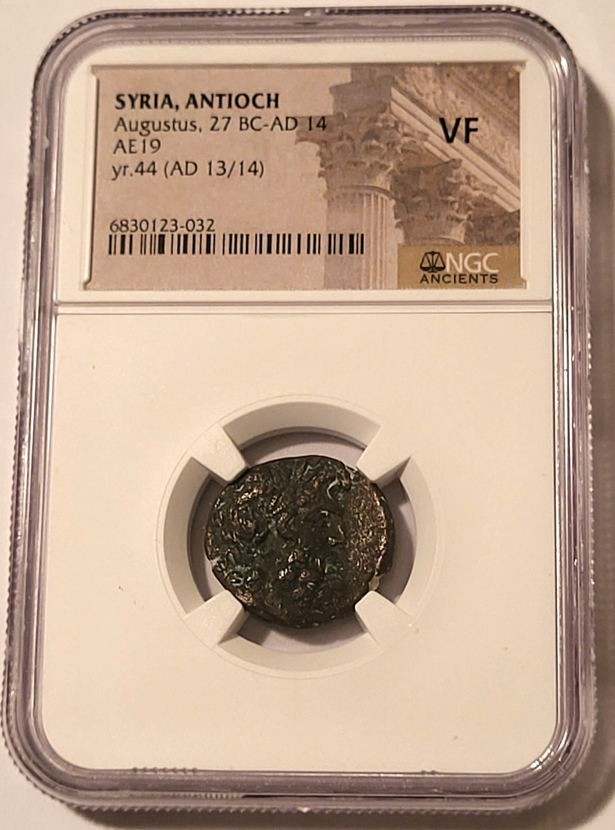 6830123032 | Roman Empire, Antioch Augustus (emperor, 27 BC-AD 14) AE19. Copper. Year 44 (AD 13/14). Very Fine NGC.